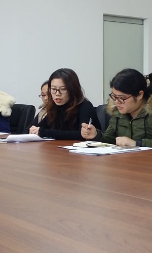 緊接著,外語系教師進行自由發言,首先張悅老師結合自己同聲傳譯課程的教學經歷,談了對當今社會和平與發展主題的理解,在教學開創合作共贏的新局面,對學生一視同仁,對少數民族的學生,盡量避開敏感話題。黃文婧老師針對目前世界中存在的“中國威脅論”談了自己的看法,中國雖然是一頭獅子,但是是一頭和善、文明的獅子,在教學中,她也這樣教育學生,傳遞正能量。虞娜芳老師認為,不管是習近平總書記的重要講話精神,還是教學過程,關鍵都在于意識的形成,意識決定行為,所以在課堂上,要培養學生愛國的意識,弘揚社會主旋律。另外,高子琳、翁志娟、李妍也分別就習近平總書記的重要講話精神結合自身的工作經歷,談了一些看法。