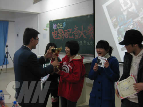本次活動的主要目的是通過英語電影配音比賽,在學院范圍內調動起學生學習英語口語、提高自身英語水平的積極性,同時培養同學們的團隊合作精神。經過上周的預賽,共有7支隊伍進入決賽。參賽隊伍帶來的精彩的英文影片讓現場觀眾大飽眼福,而各支隊伍對影片的全新演繹更是讓全場觀眾耳目一新,同學們流暢的口語、默契的配合也給在場的所有人留下了深刻的印象。穿插在比賽中的影片競猜環節也讓觀眾們參與到配音大賽中來,不少同學通過回答問題獲得了紀念品,同時給我們帶來了無盡的歡樂。