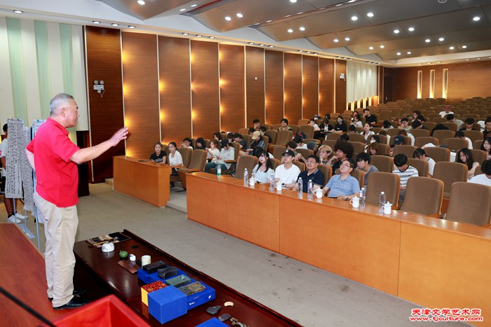 為學(xué)習(xí)貫徹習(xí)近平總書記重要講話精神,落實(shí)“以文化人、以文惠民、以文潤(rùn)城、以文興業(yè)”,深入挖掘歷史文化資源,北京科技大學(xué)天津?qū)W院藝術(shù)學(xué)院與傳統(tǒng)文化研究院于 6 月13日下午舉辦“文房四寶-古代文房制作工匠技術(shù)”講座。講座會(huì)由中國(guó)炎黃文化研究會(huì)硯文化研究分會(huì)專家委員會(huì)委員、中國(guó)古代文房藝術(shù)史研究學(xué)者程騫老師主講,天津市藝術(shù)學(xué)會(huì)知方書畫院院長(zhǎng)張長(zhǎng)勇、天津文學(xué)藝術(shù)網(wǎng)總監(jiān)高蘊(yùn)輝和藝術(shù)學(xué)院院長(zhǎng)胡寶嘉、藝術(shù)學(xué)院黨總支書記張?zhí)砩啤鹘y(tǒng)文化研究院教師孫雨馨以及200余名師生參與。