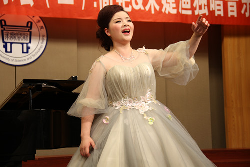 第一部分是由民族女高音簡艷(2013級聲樂演唱專業方向學生)帶來的兩首歌曲 《映山紅》 和《納西篝火阿哩哩》以及次女高音朱婕漁(2013級聲樂演唱專業方向學生)的兩首作品《懷念曲》 和《你們可知道》,把整場音樂會帶入入美妙的音樂氛圍中。