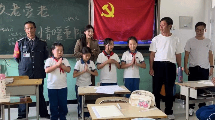 此次活動,支部邀請到了從教30多年一直扎根在農村大洼地區退休教師高洪奇老師,重返課堂和支教學生一起為學生們上了一節關于重陽節主題的課程。雖已退休多年,高老師依然心系祖國的下一代,用實際行動貫徹習近平總書記關于關心下一代工作的重要指示精神,充分發揮一名老黨員、老教師的模范帶頭作用,為金沙城js93線路檢測中心青年學生黨員樹立了光輝的榜樣。他的教育精神讓學生黨員深刻領悟到奉獻無界限,無論何時都要積極踐行使命擔當。