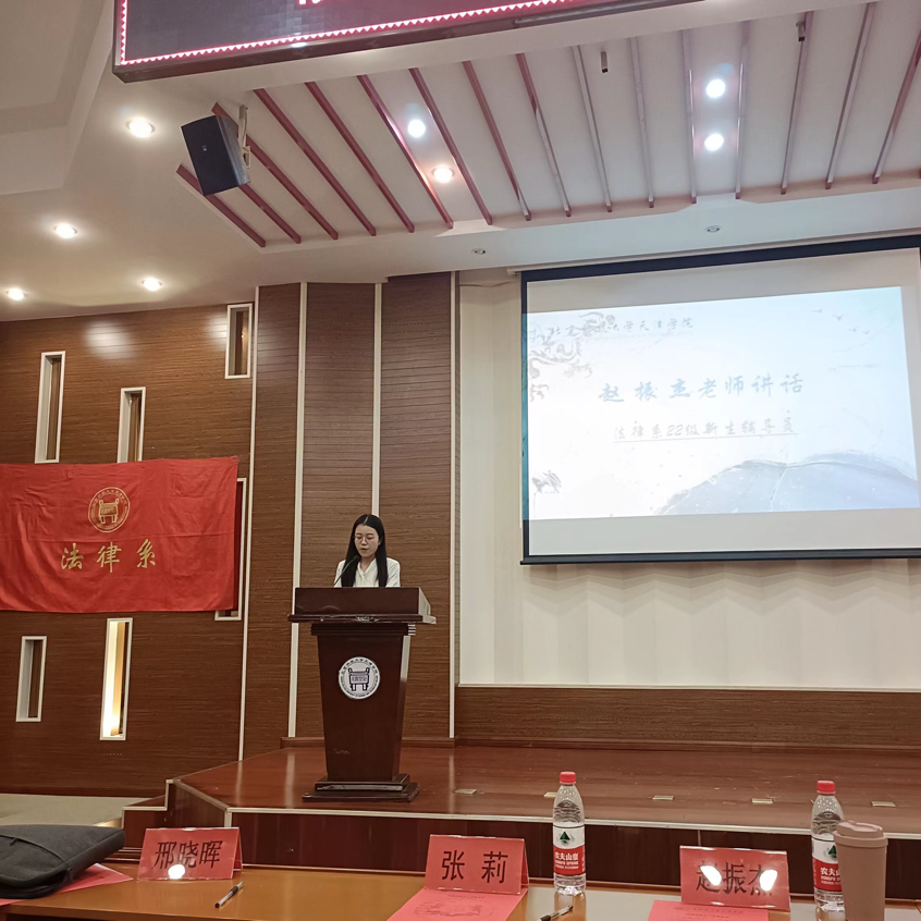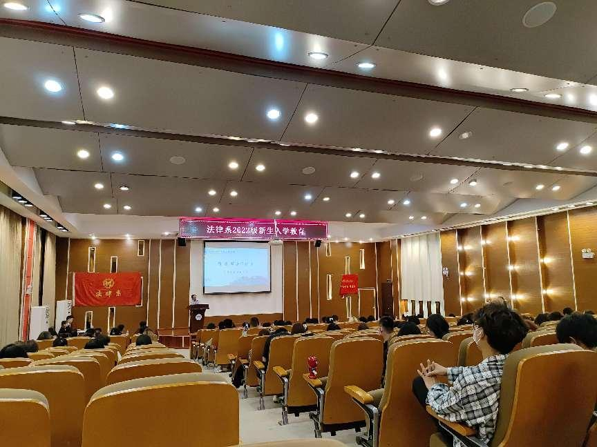 2022年9月21日,法律系在理工圖書館學術報告廳舉辦2022級新生入學教育。法律系系主任朱京安、常務副主任邢曉暉、黨總支書記張莉、2022級輔導員趙振杰、22級法律系全體新生參與本次活動。