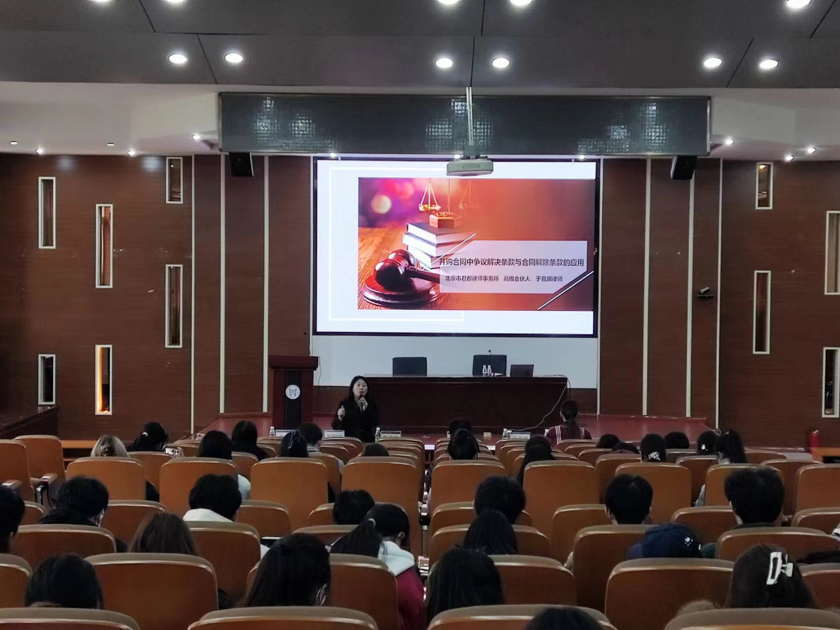 聘任儀式結束后,于競琪教授為師生們帶來題為“并購合同中爭議解決條款與合同解除條款的應用”的實務專題講座。講座由法律系主任朱京安教授主持,王超副教授擔任與談嘉賓,法律系師生共同聆聽了這場講座。