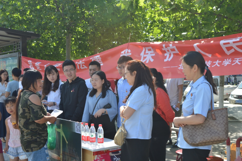 對(duì)此,為了滿(mǎn)足城鎮(zhèn)居民對(duì)法律法規(guī)知識(shí)的需求,加強(qiáng)居民法制意識(shí),提高人民群眾的維權(quán)意識(shí),為人們現(xiàn)實(shí)生活中遇到的實(shí)際法律問(wèn)題打下良好的基礎(chǔ)。5月14日早晨8:30,天津市寶坻區(qū)人民法院、法律系狴犴法律咨詢(xún)室、法律系學(xué)生黨支部、法律系分團(tuán)委學(xué)生會(huì)在周良勸寶超市門(mén)口聯(lián)合舉辦“送法下鄉(xiāng)”活動(dòng)。為人民群眾普及法律知識(shí)、進(jìn)行公益咨詢(xún)。