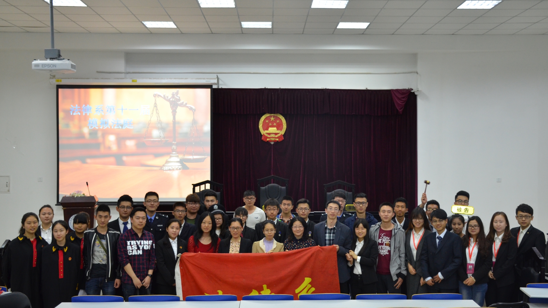 4月28日晚18:30,由法律系分團委、學生會主辦的第十一屆模擬法庭在8-109正式開庭。法律系黨總支書記馮海燕,分團委書記閆謖,老師劉志蘇、王哲老師、陳慧,導員孫超、朱嘉陽、王志潤出席了本次活動。