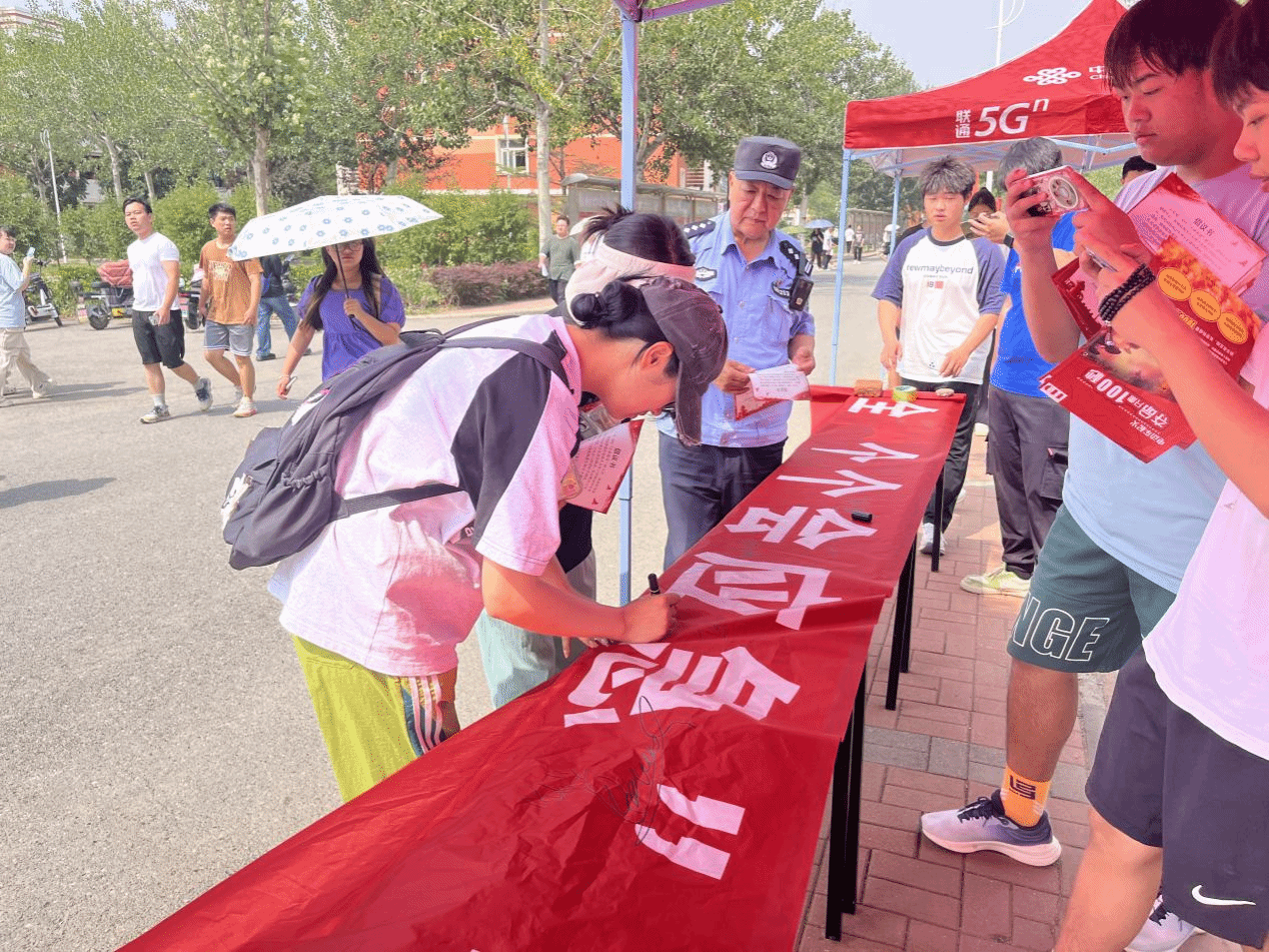 隨著下課鈴聲到來,京津新城消防救援站的指戰(zhàn)員、新城派出所民警、學院保衛(wèi)處工作人員和學生安全志愿者一起走上校園街頭,發(fā)放“暢通生命安全通道倡議書”,邀請廣大師生參與“安全承諾踐諾簽名活動”,爭做平安天院的建設者。