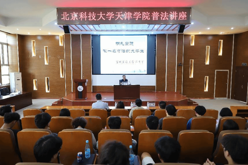 齊震宇科長以《明禮崇德 做一名守法的大學生》為題,以遵守規則是當代社會對公民的必然要求為切入點,通過對中華傳統禮儀文化、社會主義核心價值觀重點內容的深入闡釋,配以相關案例、典故注解,生動形象地進行行為引導、釋法說理,為廣大青年學子指明正確的人生道路,同時,為學院教職工提供正向的思想啟迪,普遍提升了參會人員的法律意識,為學院依法治校工作注入新動力。