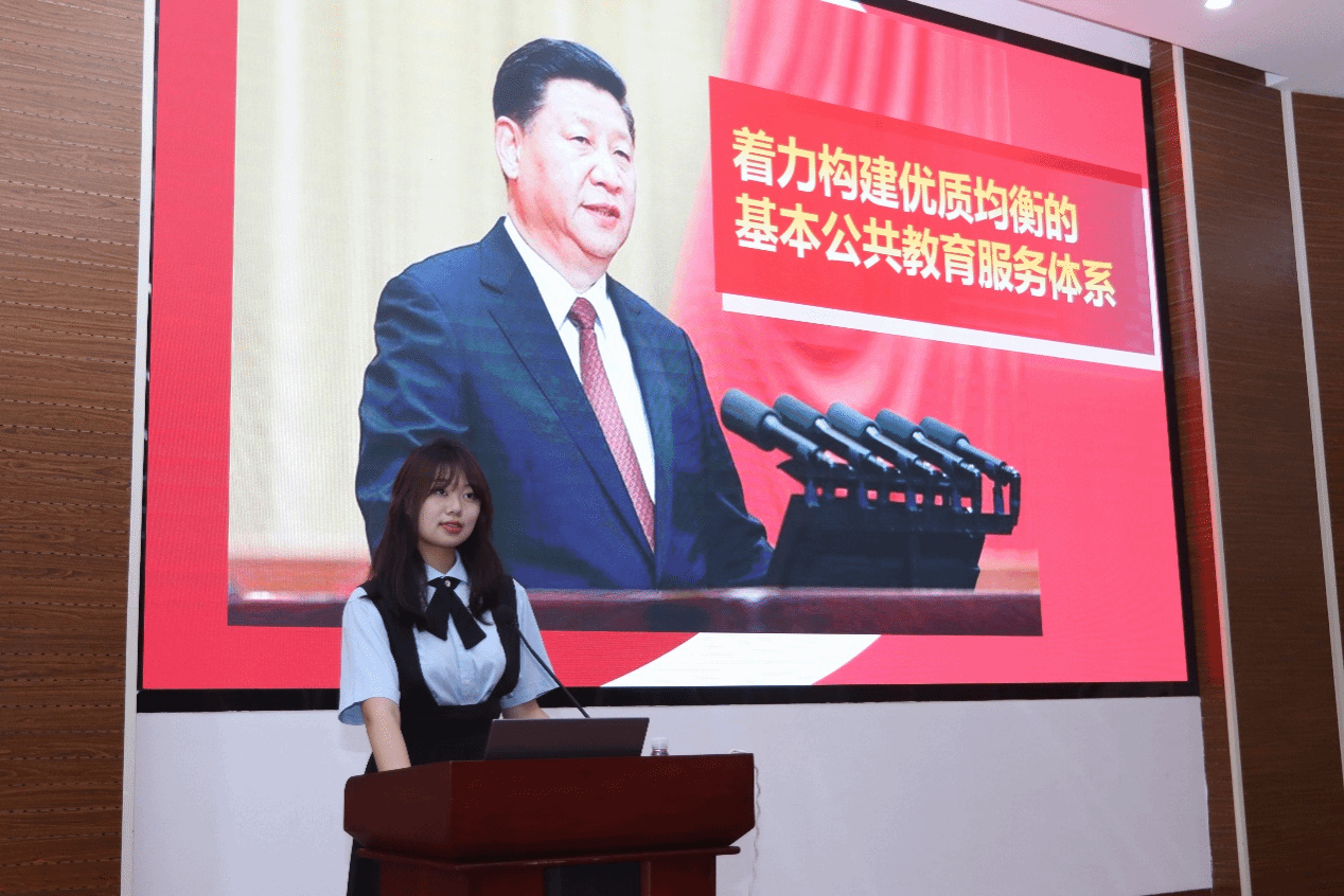 王可心同學圍繞國家以及天津市各項資助政策,結合北科大天津學院實際情況對相關資助政策體系進行了深入解讀,同時分享了自己如何在國家和學校資助育人政策的幫助下勇于逐夢、敢于追夢的奮斗故事,展現了當代大學生奮發自強、立志成才、感恩奉獻的精神風貌。