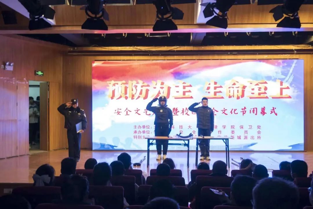 為進一步提升安全宣傳活動實效性,激發廣大師生群體學習安全知識技能的熱情,11月29日晚7:30,學院舉辦“預防為主,生命至上”安全文藝展演活動,為校園安全文化節系列安全宣教活動畫上圓滿句號。京津新城派出所所長李立軍,京津新城消防救援站指導員史洪蕾,北京科技大學天津學院黨委書記葉振楠,副院長張永鋒,黨委副書記趙志南、栗時鋒,院長助理、學術委員會主席宋存義,京津新城派出所部分民警,京津新城消防救援站部分指戰員,學院部分中層干部及各院系師生代表參加了本次晚會。