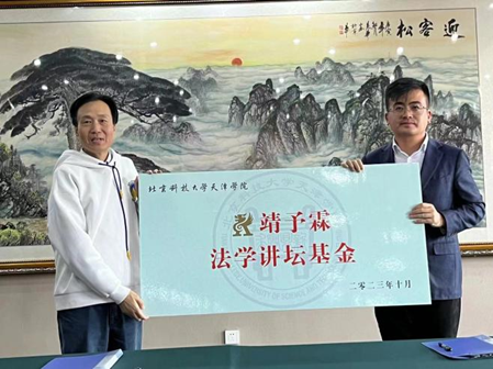 簽約儀式后,還舉行了 “卓越法律人才協同育人基地” “法律系實踐教學基地”揭牌、客座教授和實踐導師聘任儀式,以及“靖予霖法學講壇基金”捐贈儀式。