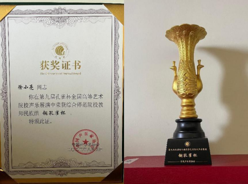 7月28日至8月5日,第九屆孔雀杯全國高等藝術(shù)院校聲樂展演在浙江音樂學(xué)院隆重舉行,金沙城js93線路檢測(cè)中心藝術(shù)學(xué)院音樂系聲樂演唱教研室?guī)熒l(fā)揮出色,取得驕人成績(jī),總成績(jī)位列前茅。此次參賽由音樂系聲樂演唱教研室主任高麗與教師黨支部書記任琦琦共同帶隊(duì),共派出金沙城js93線路檢測(cè)中心11名師生進(jìn)入復(fù)賽,經(jīng)過兩輪展演、總展演的復(fù)賽激烈角逐,藝術(shù)學(xué)院音樂系青年教師徐小亮獲得綜合師范院校教師民族組銅孔雀獎(jiǎng),青年教師白晶袁獲得綜合師范院校教師美聲組優(yōu)秀獎(jiǎng),教師徐小亮指導(dǎo)的2021級(jí)學(xué)生荀子弋獲得綜合師范院校本科民族組優(yōu)秀獎(jiǎng),其他師生獲得共8項(xiàng)展演獎(jiǎng)。藝術(shù)學(xué)院音樂系榮獲第九屆孔雀杯高等藝術(shù)院校聲樂展演“優(yōu)秀組織獎(jiǎng)”。