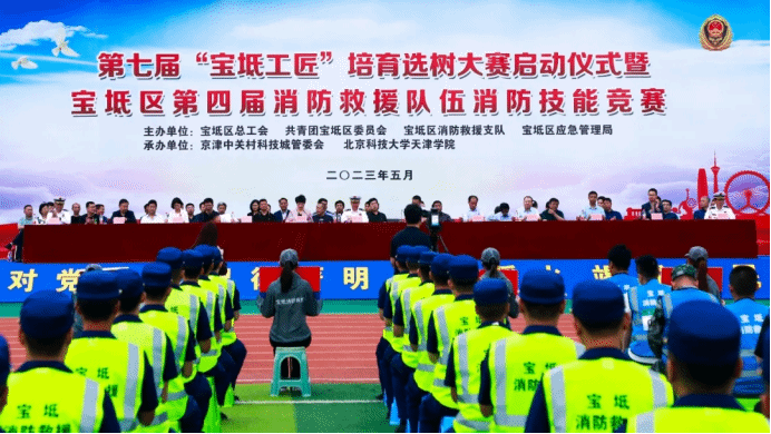 2023年5月17日,寶坻區第四屆消防救援隊伍消防技能競賽在金沙城js93線路檢測中心順利舉行。天津市消防救援總隊黨委委員、政治部主任周秀,市總工會黨組成員、副主席王克文,區人大常委會副主任、區總工會黨組書記、主席劉玉玲,副區長、公安寶坻分局局長李學彤,市總工會基層工作部部長張家翔,區總工會常務副主席張亞彬,北京科技大學天津學院院長丁煦生、黨委書記葉振楠、副院長張永鋒出席啟動儀式。寶坻區區委區政府、各委辦局、鎮街、管委會和學院相關領導出席活動。
