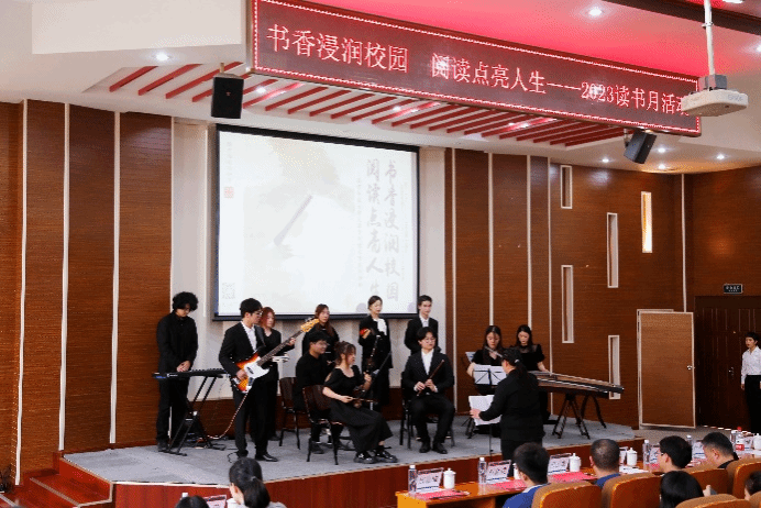 此次讀書節晚會在未亭民樂團帶來的《市集》中拉開帷幕,古箏、二胡、笛子、貝斯、鍵盤以及打擊樂等中西樂器合奏,體現了校園文化的豐富多彩。