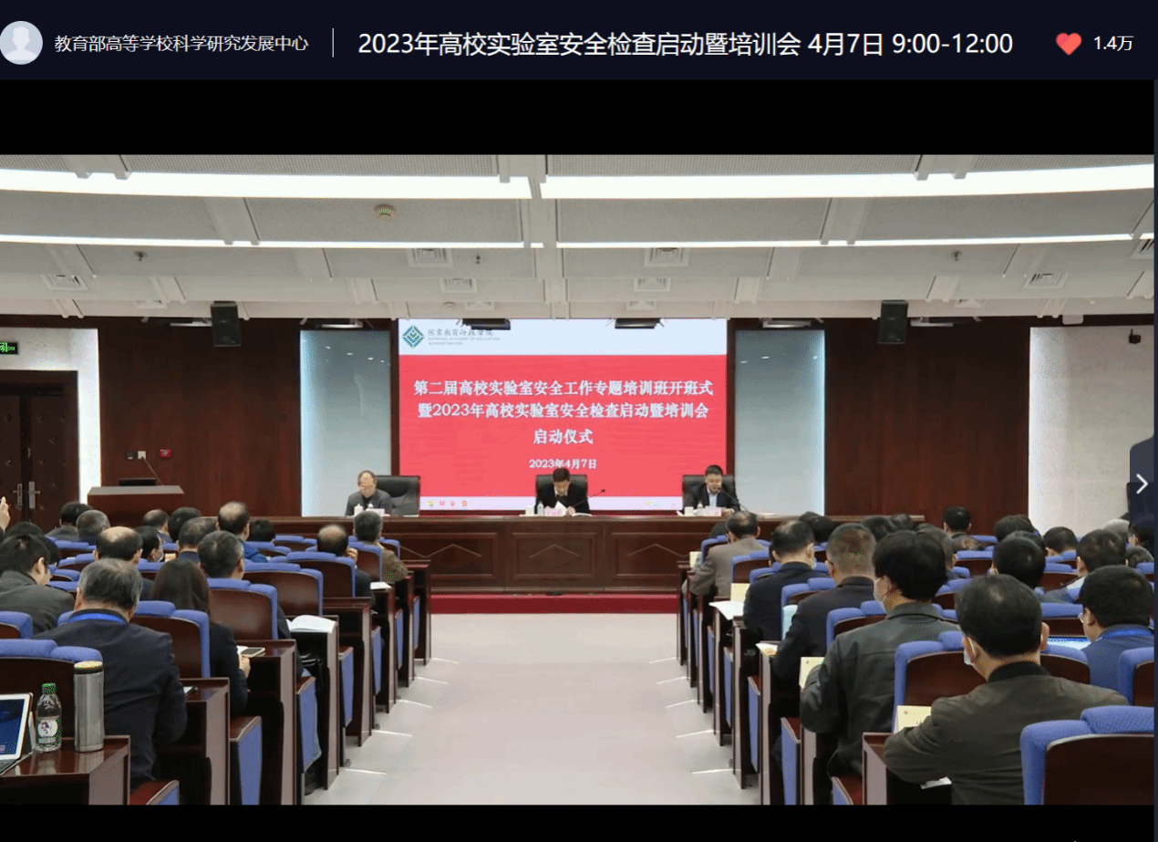 4月7日上午,學院組織有關人員參加教育部科學技術與信息化司、高等教育司舉辦的2023年高校實驗室安全檢查啟動暨培訓會,院長丁煦生、黨委副書記趙志南參加培訓會。
