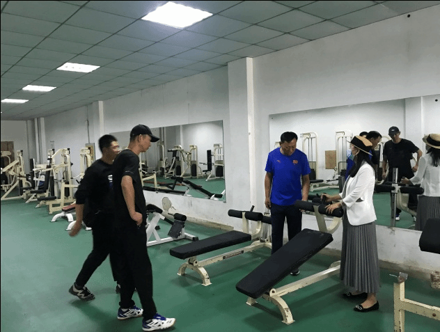 副院長兼財務總監王俊敏檢查體育館運動器械
