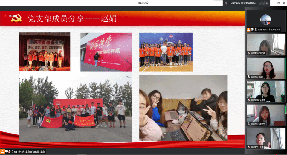在主題黨日活動中,支部黨員同志通過分享家鄉的黨史故事、回顧習近平總書記“七一”重要講話、在實踐中深入群眾的事例分享三個方面的內容展示了自己的學習成果和實踐行動。充分彰顯了新一代中國青年人對馬克思主義的崇高信仰、對共產主義和中國特色社會主義的堅定信念,始終用自己的實際行動踐行著身為一名共產黨員的責任與擔當。