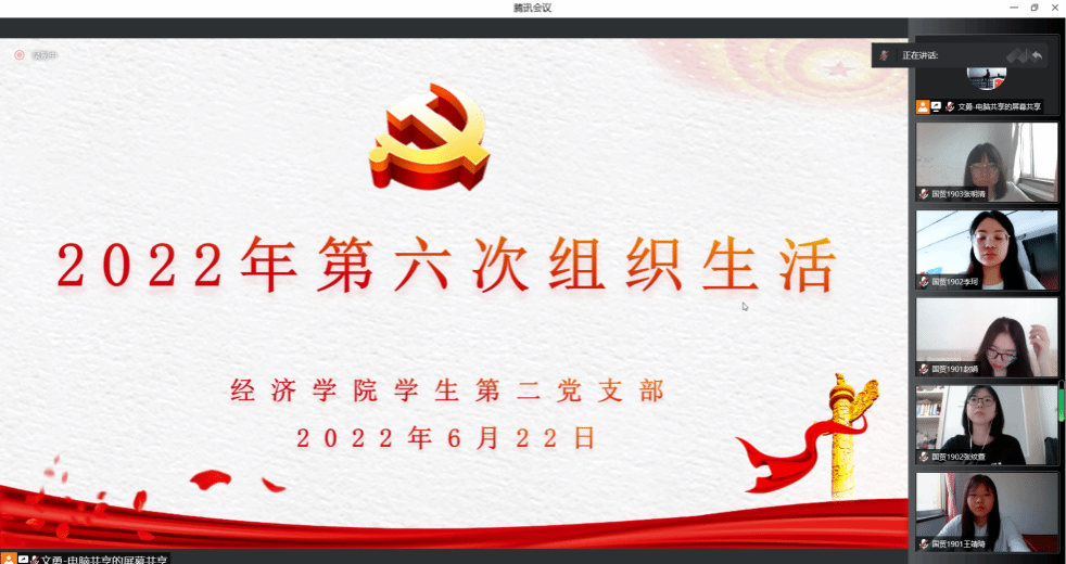 為激勵廣大黨員堅定理想信念,不忘初心、牢記使命,重溫黨的光輝歷史,繼承和發揚黨的光榮傳統和優良作風,進一步增強黨的凝聚力和戰斗力,6月22日,經濟學院學生第二黨支部通過騰訊會議線上形式開展2022年第六次組織生活和“追尋紅色足跡,傳承偉大建黨精神”主題黨日活動。天津學院院長、黨委書記丁煦生與黨支部全體師生黨員參加,此次活動由黨支部書記文勇同志主持。