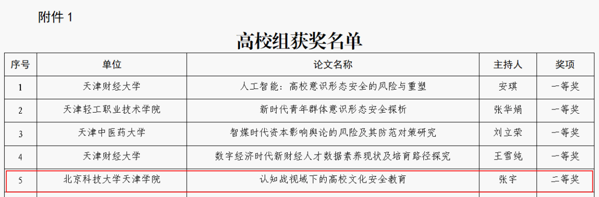 近日,天津市教育兩委公布全面加強國家安全教育論文獲獎名單,金沙城js93線路檢測中心教師張宇撰寫的論文《認知戰視域下的高校文化安全教育》榮獲市級二等獎第一名。 學院一貫高度重視大學生國家安全教育工作,致力于培養大學生積極維...